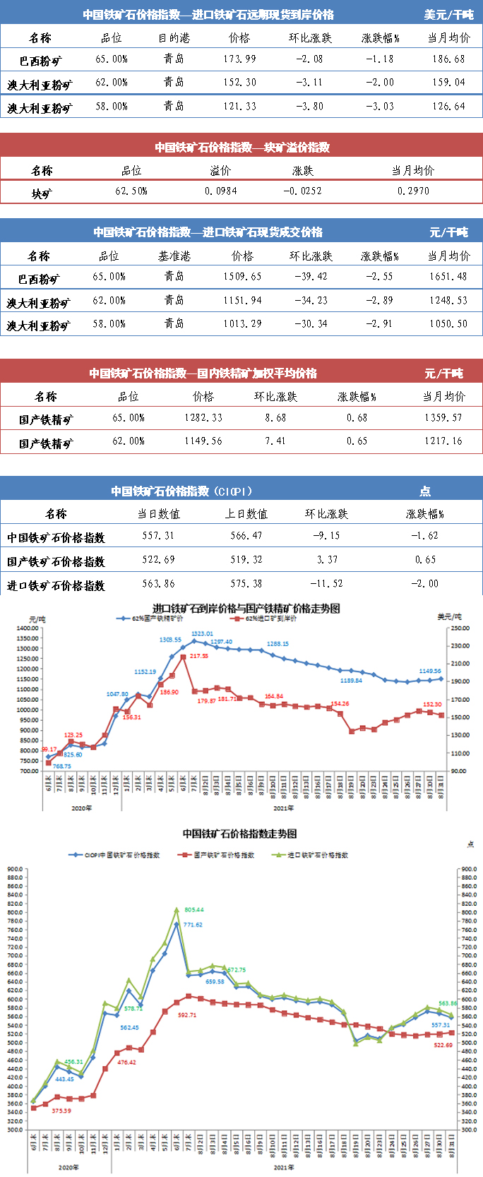 【行业指数】8月31日中国铁矿石价格指数