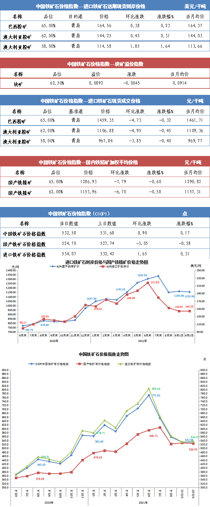 【行业指数】9月2日中国铁矿石价格指数