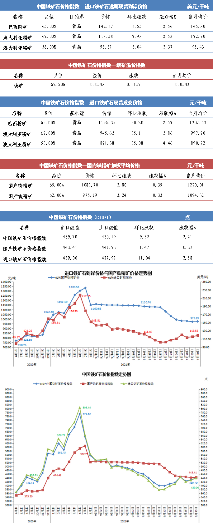 【行业指数】9月30日中国铁矿石价格指数