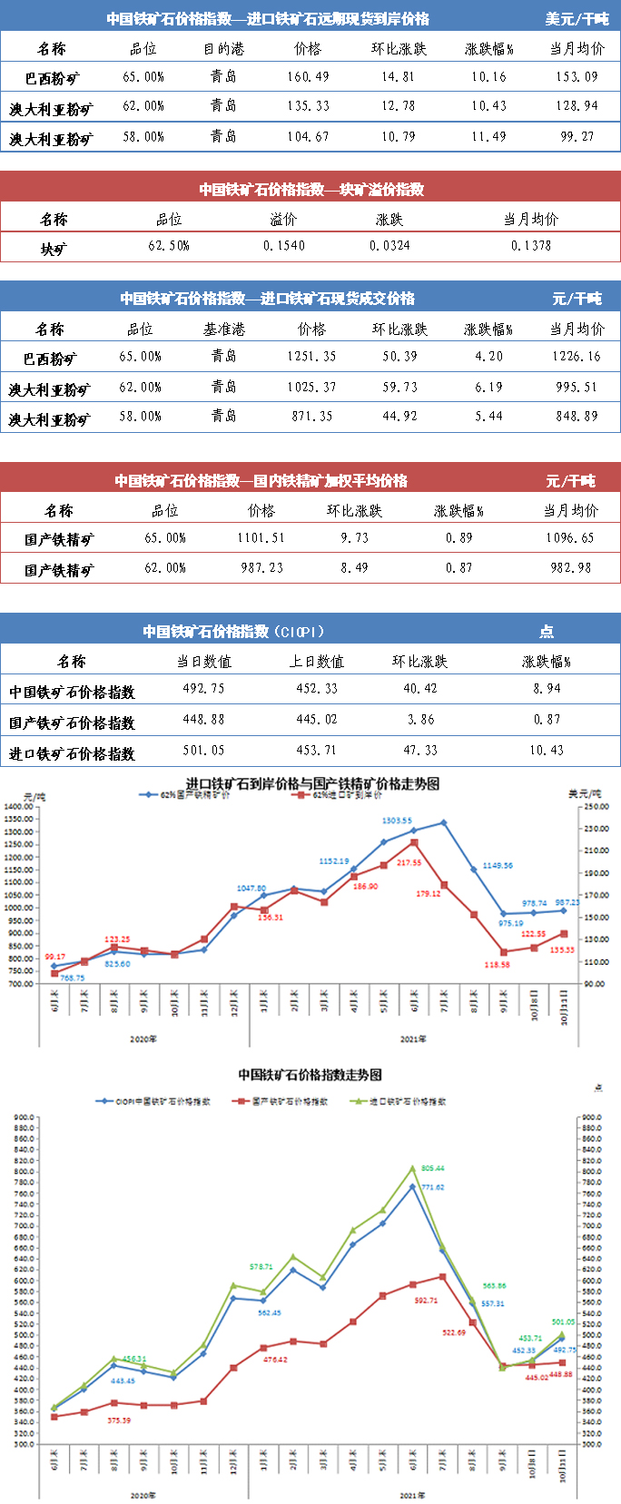 【行业指数】10月11日中国铁矿石价格指数