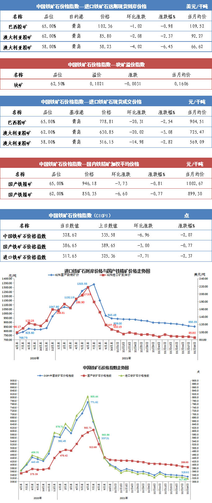 【行业指数】11月18日中国铁矿石价格指数