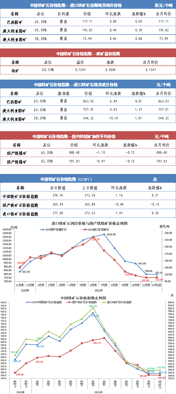 【行业指数】12月1日中国铁矿石价格指数
