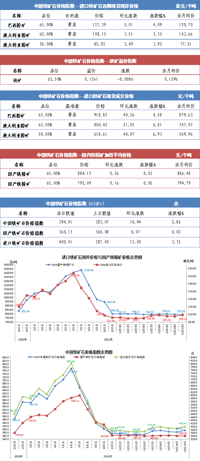 【行业指数】12月13日中国铁矿石价格指数