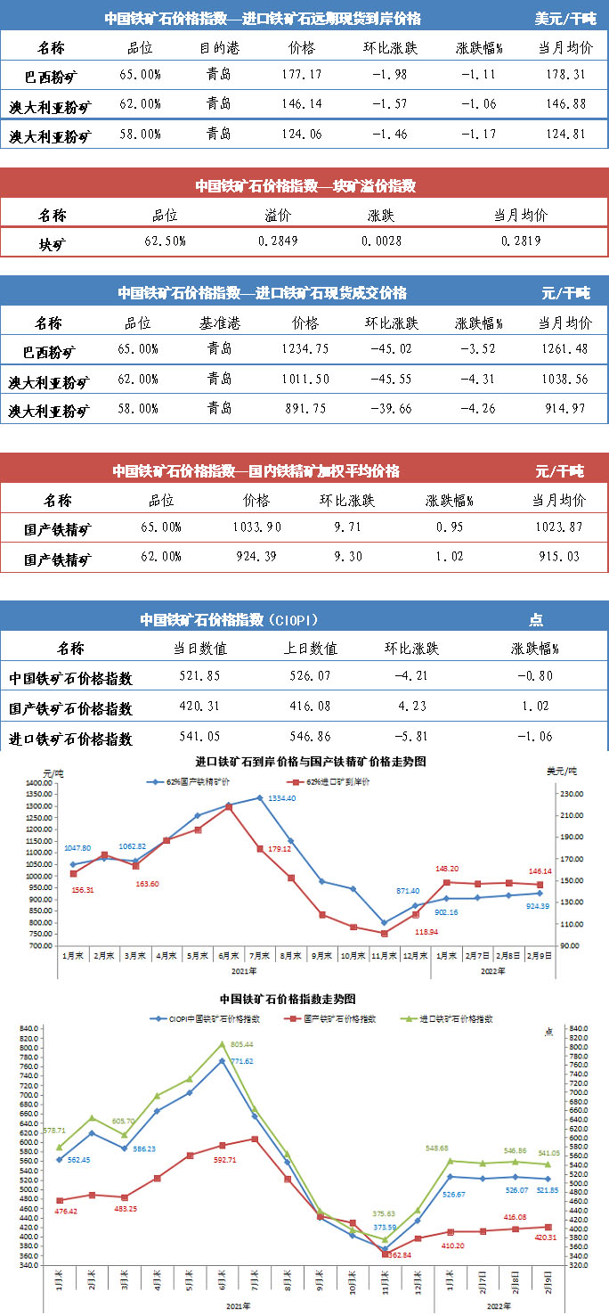【行业指数】2月9日中国铁矿石价格指数