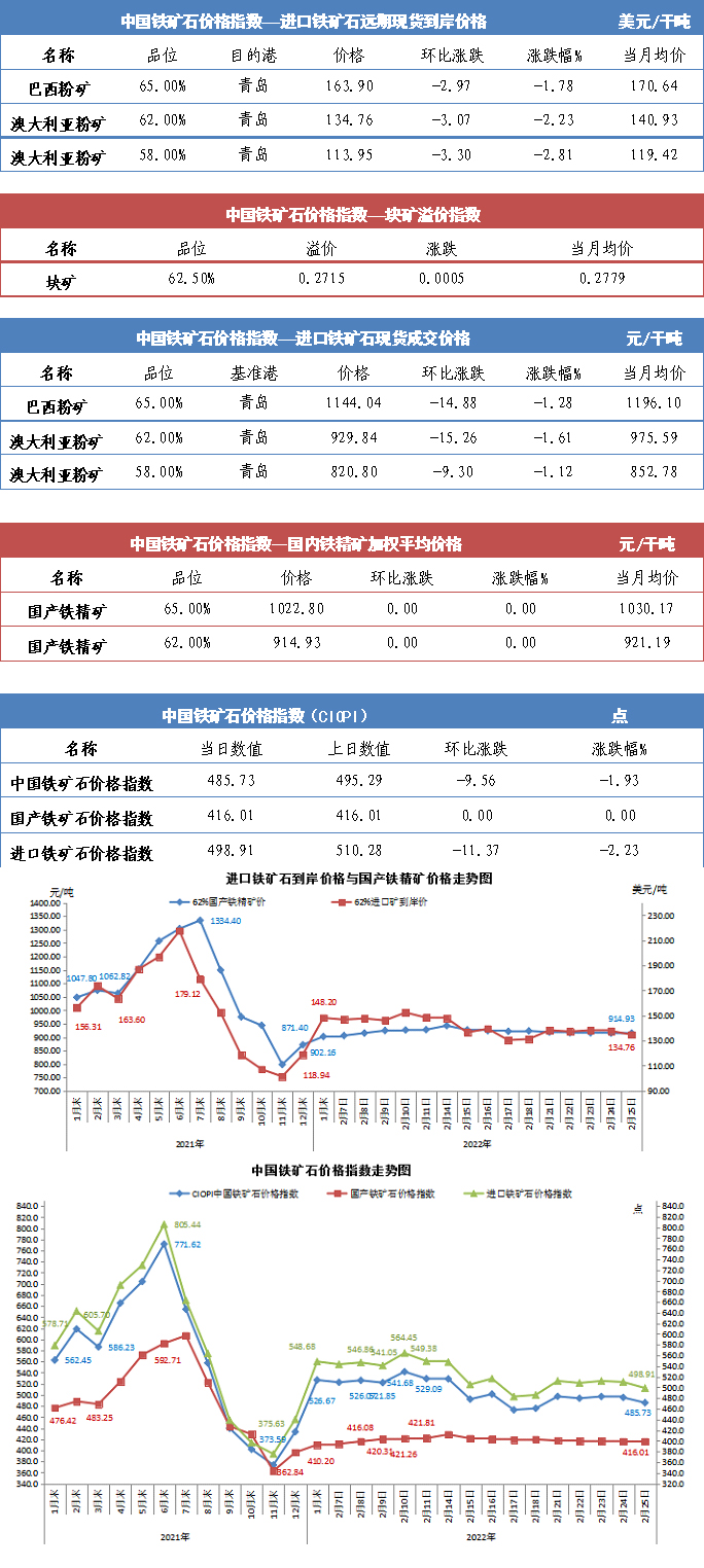 【行业指数】2月25日中国铁矿石价格指数