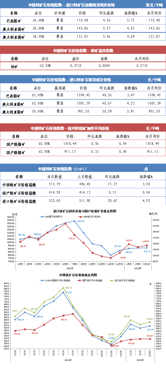 【行业指数】3月1日中国铁矿石价格指数