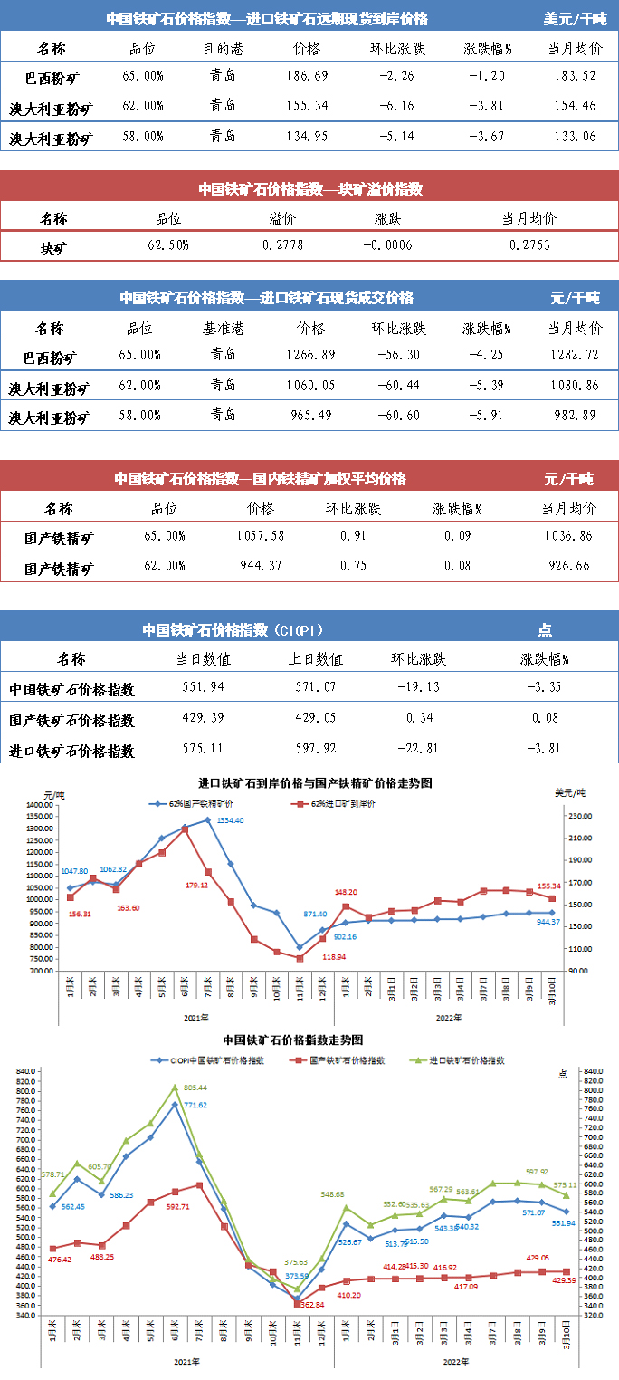【行业指数】3月10日中国铁矿石价格指数