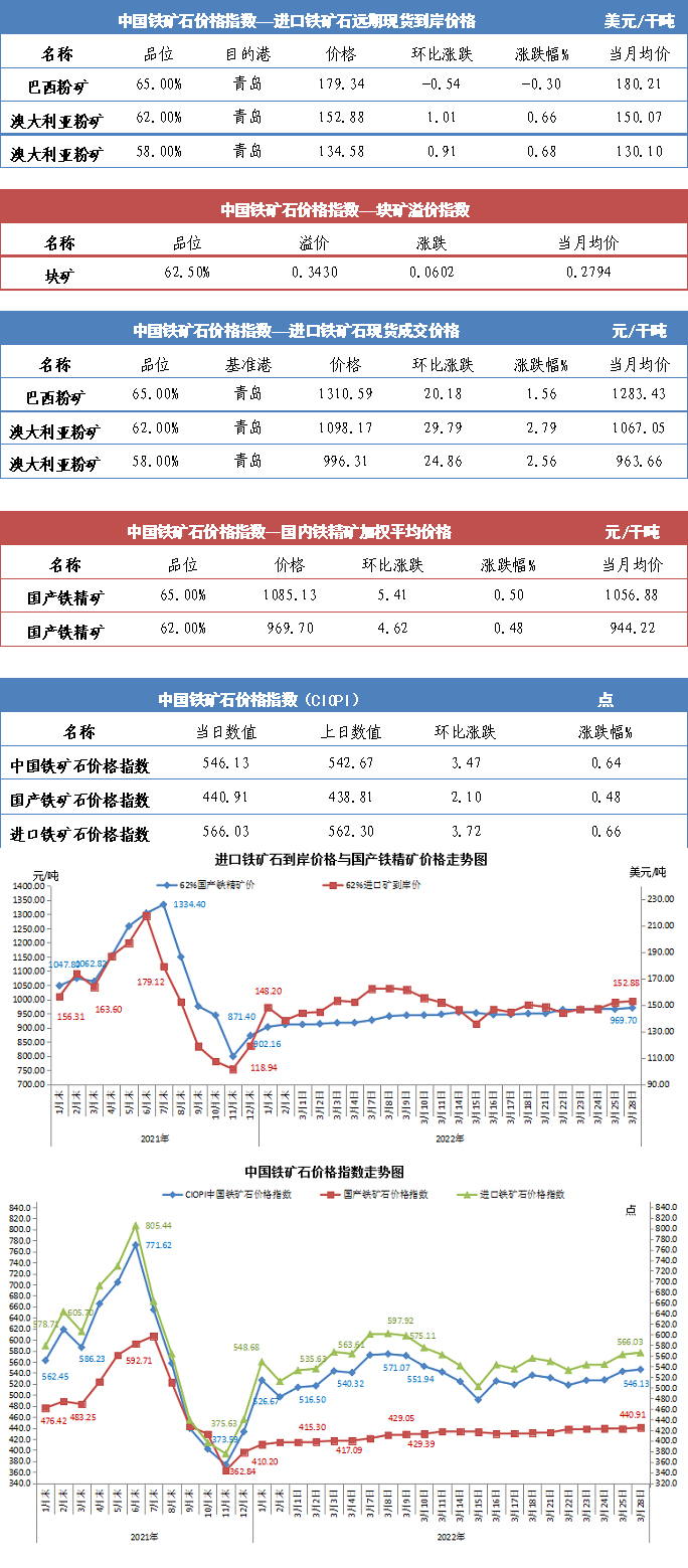 【行业指数】3月28日中国铁矿石价格指数