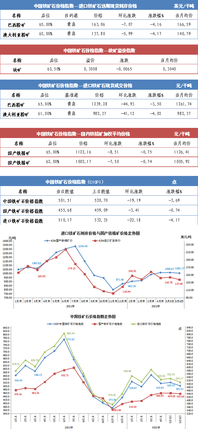 【行业指数】5月6日中国铁矿石价格指数