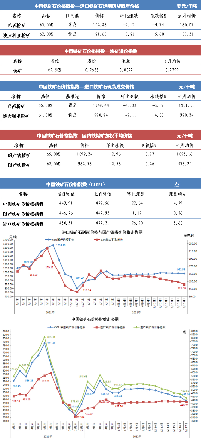 【行业指数】6月17日中国铁矿石价格指数