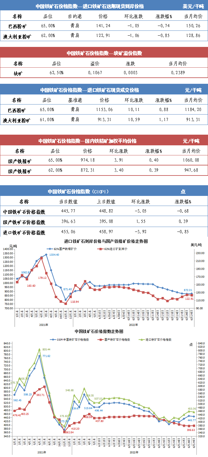 【行业指数】6月29日中国铁矿石价格指数