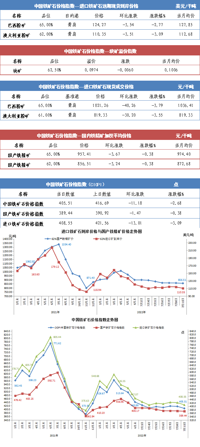 【行业指数】7月11日中国铁矿石价格指数