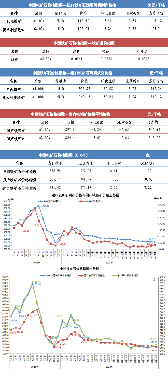 【行业指数】7月25日中国铁矿石价格指数