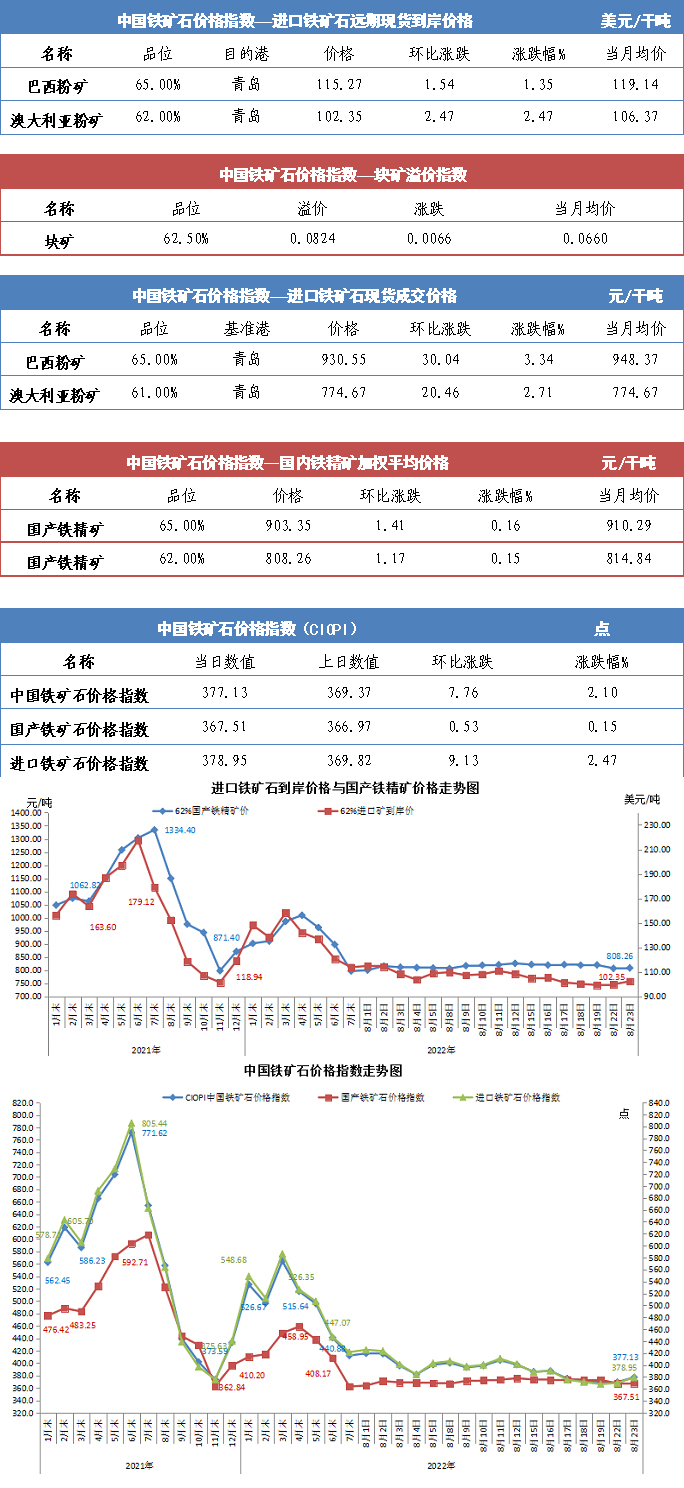 【行业指数】8月23日中国铁矿石价格指数