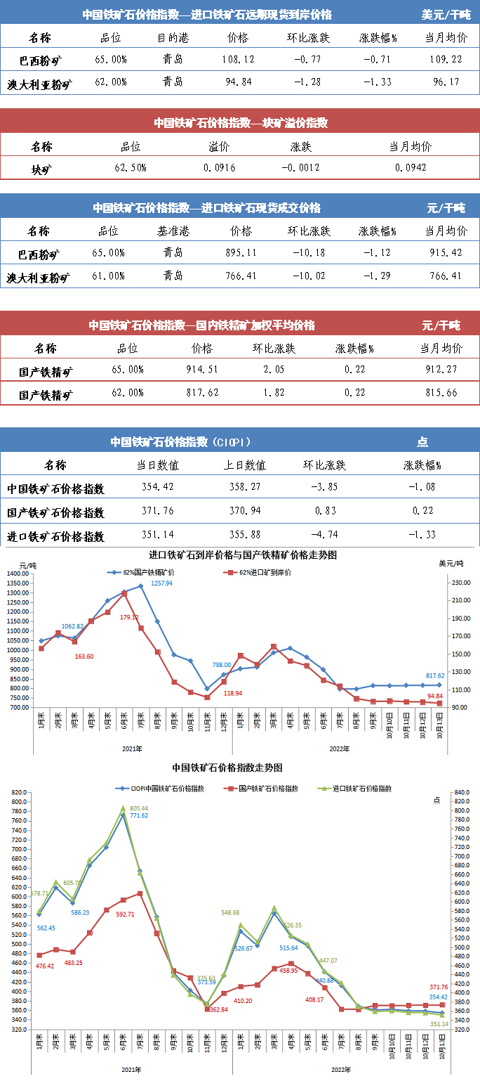 【行业指数】10月13日中国铁矿石价格指数