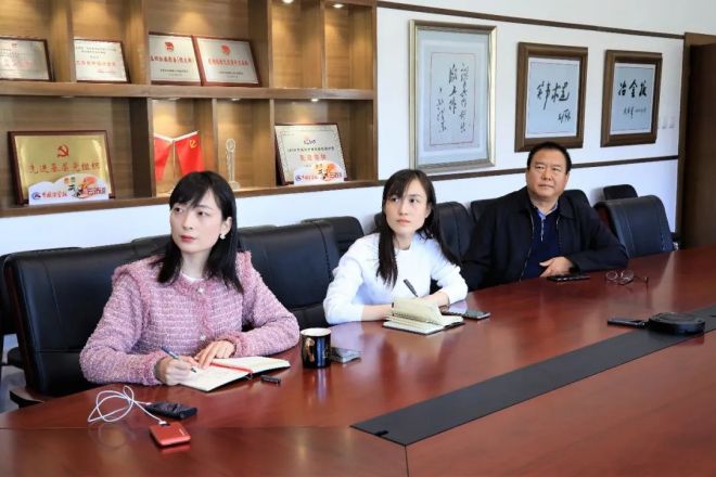 本次会议采用现场+线上直播的方式进行,图为中国冶金报社党委书记、社长陈玉千(右一)与《中国冶金报》记者通过视频参会。