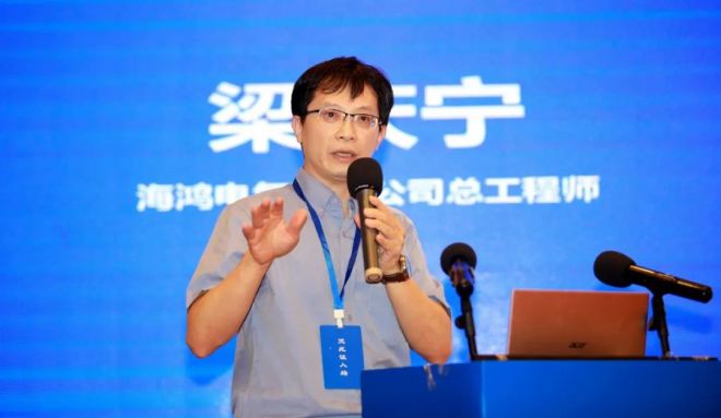 图为梁庆宁做《立体卷铁心技术创新与发展》的报告