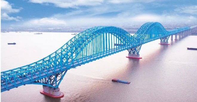 南京大胜关长江大桥是京沪高速铁路的控制性工程之一,是世界上首座六线铁路大桥,也是世界上跨度最大、世界上设计荷载最大的高速铁路桥,被称为“新中国建桥史上的第五座里程碑”。南京大胜关长江大桥全长9273米,其中主桥长1615米,主跨为336米,跨度布置为108米+192米+336米+336米+192米+108米。