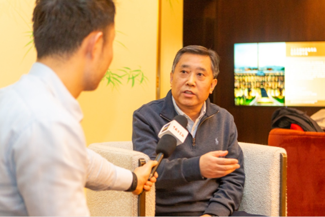 图为傅培众接受《中国冶金报》记者采访(特约通讯员 蓝义高 摄影)
