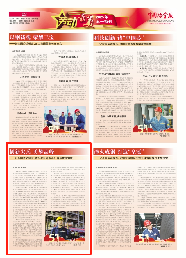 从事点检工作18年,刘铁攻破13项被国外垄断的关键核心技术难题,创造了真空炉故障诊断最准、故障处理最快、设备开动效率最高的行业纪录,累计完成技术攻关530余项,为企业创效超1.1亿元。他先后获得全国五一劳动奖章、全国技术能手、全国机械冶金建材行业工匠、中央企业“大国工匠”、鞍山青年五四奖章等荣誉称号。(林思伽)