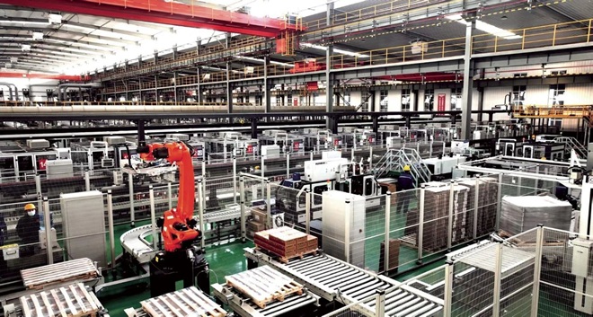 图为中阳钢铁焊丝生产线。 (贺双全 摄)