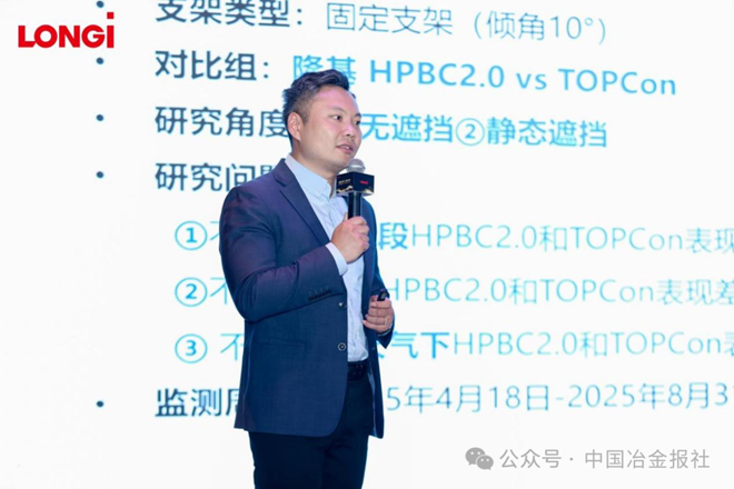 图为北京鉴衡认证中心有限公司太阳能事业部技术总监朱晨分享《HPBC 2.0组件多场景多维度发电特性实证报告》