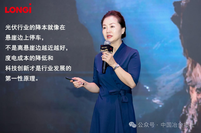 隆基绿能分布式中国区总裁牛燕燕在致辞中讲道:“光伏行业的降本就像在悬崖边上停车,不是离悬崖边越近越好,度电成本的降低和科技创新才是光伏行业发展的第一性原理。”