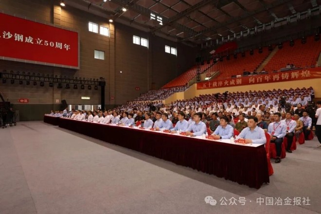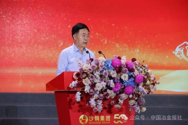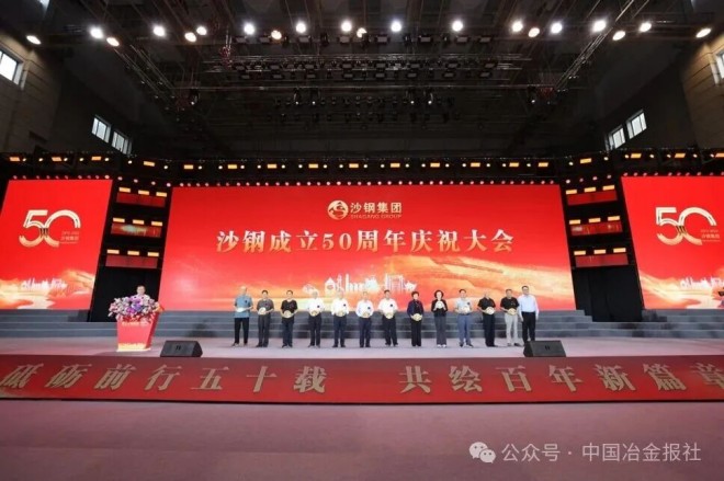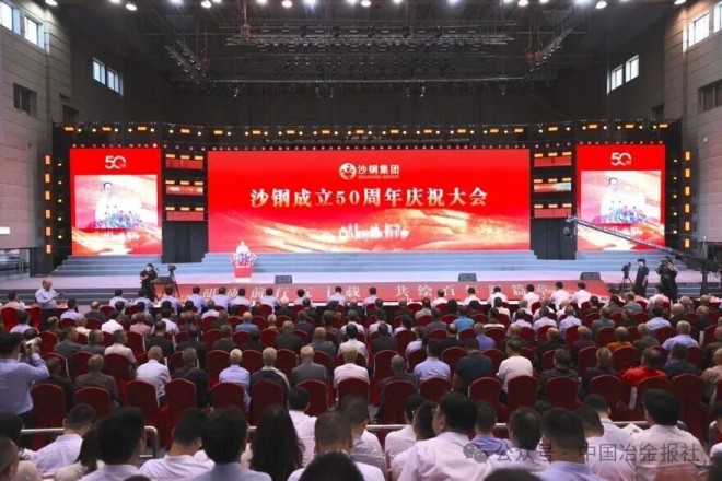 50周年庆祝大会在沙钢举行。张家港地方政府领导及媒体等与沙钢干部职工代表及退休老同志代表齐聚一堂,通过观看专题片、领导致辞和讲话等环节,共同回顾了沙钢50年来从“江边小厂”到“世界500强”的跨越式发展成就并擘画未来高质量发展蓝图。沙钢集团常务执行董事、总裁龚盛作总结报告。沙钢集团常务执行董事、副总裁陈少慧及张家港市领导分别致辞。庆祝大会由沙钢集团常务执行董事、副总裁陈晓东主持。