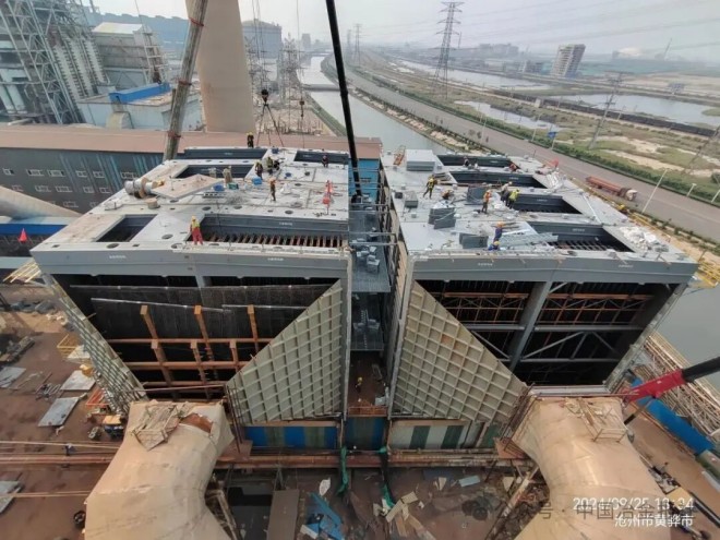 图为沧州中铁烧结机头电除尘器大修项目现场