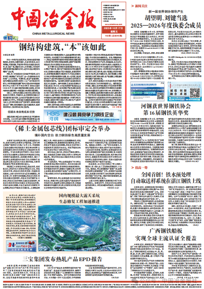 同时,需尽快建立钢结构建筑全生命周期碳排放科学评估体系,可按照界定边界—采集数据—构建模型—制定标准步骤推进,摸清各环节碳排放足迹,寻求更高效的减碳路径。首先,明确钢结构建筑从材料生产到拆除回收各阶段核算范围;其次,采集包括钢铁生产过程、物流运输、施工过程、拆除再利用等各阶段关键参数;再次,构建模型,采用LCA(生命周期分析)方法量化各环节碳排放;最后,推动形成行业统一的评估指标与认证机制。该体系将发挥三重作用,在技术层面上将引导绿色施工技术应用、减少建筑垃圾,在政策层面上将辅助国家有关部门精准施策,在产业层面上将促进钢铁与建筑产业协同发展。
