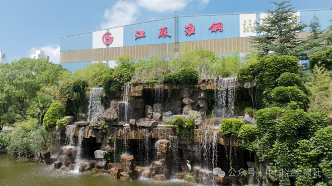 《中国冶金报》记者走进淮钢,但见道路两旁的梧桐树亭亭如盖,阳光洒下,树影斑驳;流水从开满鲜花的假山倾泻而下,形成道道清凉瀑布,很难将公园与一家年产数百万吨特钢的现代化钢铁企业区别开来。