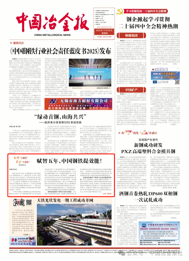 截至2025年9月底,我国钢铁行业累计建成36个卓越级智能工厂,超额完成“十四五”规划中打造30家以上智能工厂的目标任务;在代表全球制造业智能制造和数字化最高水平的“灯塔工厂”中,全球有7家钢铁企业,其中我国有3家,分别是宝钢股份宝山基地工厂、中信泰富特钢(兴澄特钢)和首钢股份冷轧公司……这些只是“十四五”时期我国钢铁行业智能制造方面亮眼成绩的一个缩影。