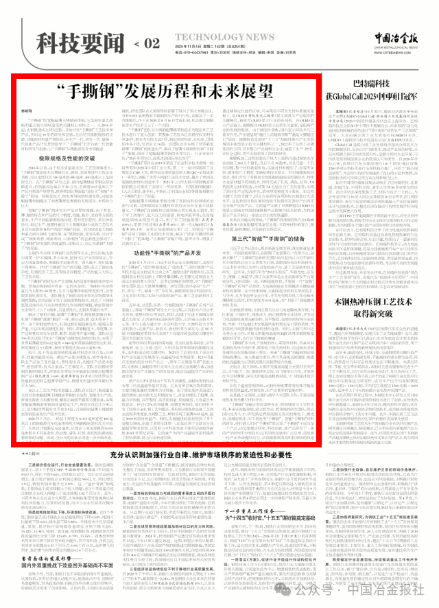 “手撕钢”即宽幅超薄不锈精密带钢,它是国家重大战略和重点新兴领域急需的关键核心材料之一。从2016年起,太钢集团成立研发团队,开始开发“手撕钢”工艺技术和产品,历时近10年的研发和创新,先后经历极限规格的突破、功能新材料量产等阶段,在生产一代、研发一代、储备一代的新产品开发思想指导下,“手撕钢”正开启新一代智能材料研发与创新,让“手撕钢”从跟跑者变身为领跑者。