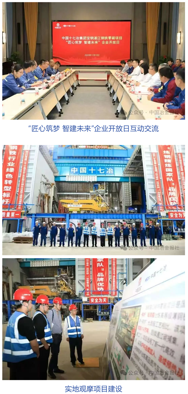 11月10日,中国中冶“匠心筑梦·智建未来”企业开放日走进中国十七冶承建的宝钢湛江钢铁零碳项目直接还原铁输送设施及炼钢工程项目。活动邀请业主单位宝钢湛江钢铁等产业链上下游企业代表,以及新华网、央广网、中国冶金报、中安在线等主流媒体,通过党建联建共建、座谈交流、实地探访等多种形式,立体呈现中国十七冶充分发挥炼钢精炼领域的专业优势、以数智建造赋能项目品质履约,服务国家战略和产业链升级的生动实践和建设成果。