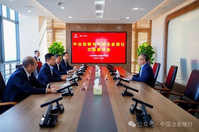 王振智对范铁军的到访表示欢迎,并介绍了中冶宝钢的基本情况。他表示,中冶宝钢作为以冶金运营服务为核心主业的专业化公司,多年来始终专注于冶金运营服务,并不断向有色、矿山领域拓展,形成了“一总部、八基地”的市场布局,构建了“1+N+S”的组织架构模式,通过管理变革、模式创新与能力提升,推动传统运营服务向高端化、智能化、绿色化、专业化迈进。中国冶金报社是钢铁领域备受认可的权威媒体,是服务企业需求、促进行业交流的重要平台,希望双方进一步围绕循环经济发展、绿色低碳转型、科技创新赋能等领域加强沟通,共同展示中冶宝钢的发展成果,提升品牌影响力。