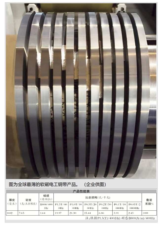 “如今,我们0.02毫米全球最薄电工钢带的成功下线,一举击穿国外30年技术壁垒,让中国高端装备首次拥有‘毫米级体积、微米级精度、毫秒级响应’的国产心脏,更把‘中国厚度’推向全球铁芯材料供应链的最顶端——0.02毫米,重新定义了世界超薄电工钢的‘天花板’。目前,我们正在进行0.018毫米的开发。”日前,该公司董事长黄穗对《中国冶金报》记者说。