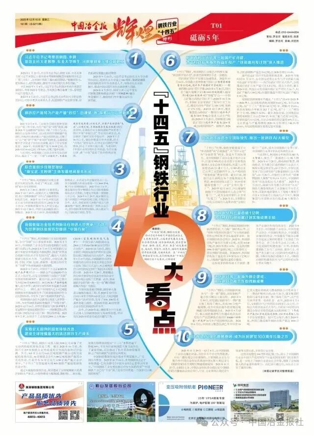 “十四五”时期,钢铁行业坚持以习近平新时代中国特色社会主义思想为指导,以高质量发展为主题,抓住难得机遇、顶住各种挑战,坚决贯彻‘创新、协调、绿色、开放、共享’的发展理念,高端化、智能化、绿色化、国际化发展取得开创性进展、突破性成就。在 “十四五”即将收官之际,我们特梳理出“十四五”钢铁行业十大看点,以飨读者。