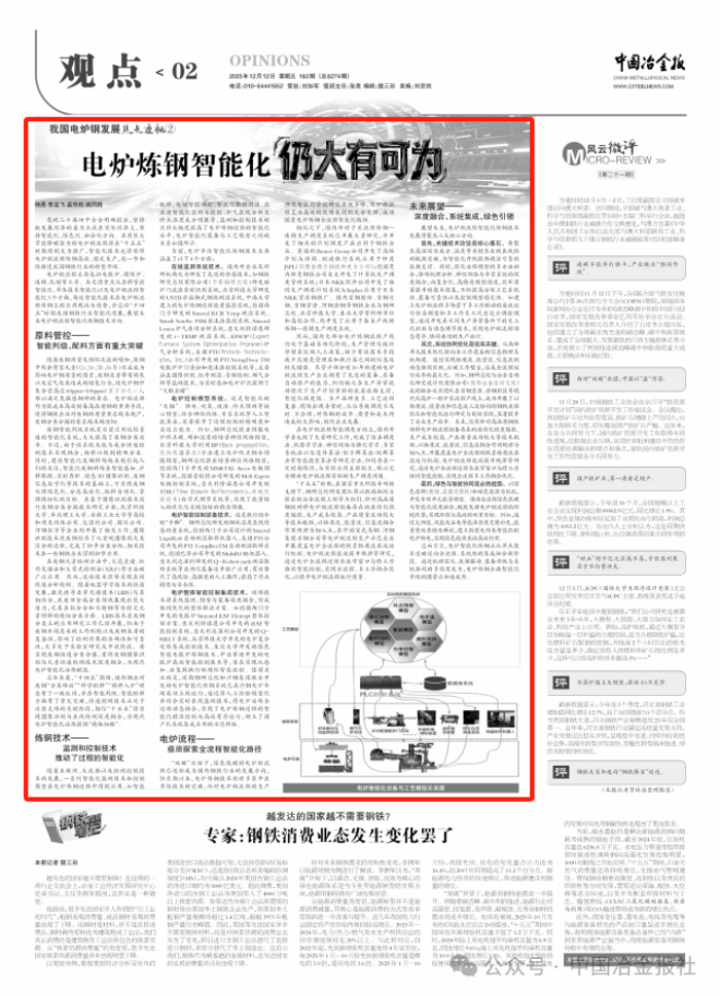 党的二十届四中全会明确提出,坚持把发展经济的着力点放在实体经济上,坚持智能化、绿色化、融合化方向。具有巨大节能降碳潜力的电炉短流程将在“十五五”时期得到大力推广,智能化技术也将保障电炉短流程炼钢高效、稳定生产,进一步加快推进我国钢铁行业的转型升级。