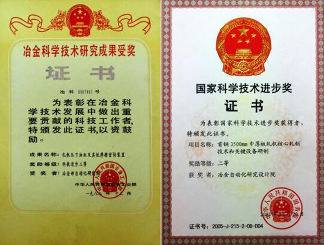 据介绍,“首钢3500mm中厚板轧机核心轧制技术和关键设备研制项目”分别于2004年获中国钢铁工业协会冶金科学技术奖一等奖、2005年获国家科学技术进步奖二等奖、2006年获北京市科学技术奖二等奖等。