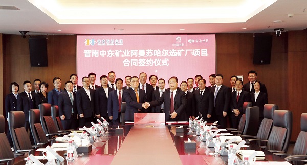2025年3月21日,晋南钢铁集团与中冶长天国际工程有限责任公司签订阿曼苏哈尔选矿厂及配套料场、长距离矿浆输送、尾矿干堆项目总承包及管理合同。该项目是中阿经贸合作的标志性项目、巴西淡水河谷中东枢纽计划的首个落地项目。项目规划年处理铁矿1800万吨,年产1260万吨超高品质铁精粉。图为签约仪式现场。 (特约通讯员 丁卫国 摄)