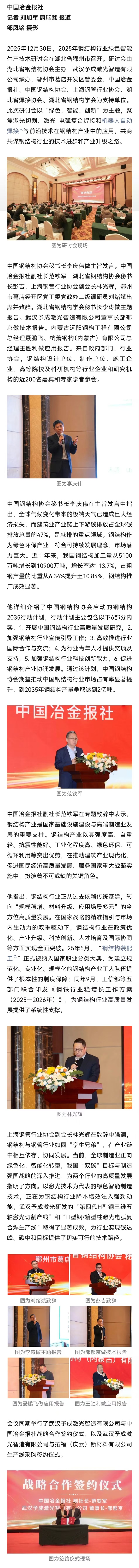 激光智能智造技术为钢结构产业注入新动能——2025年钢结构行业绿色智能生产技术研讨会召开