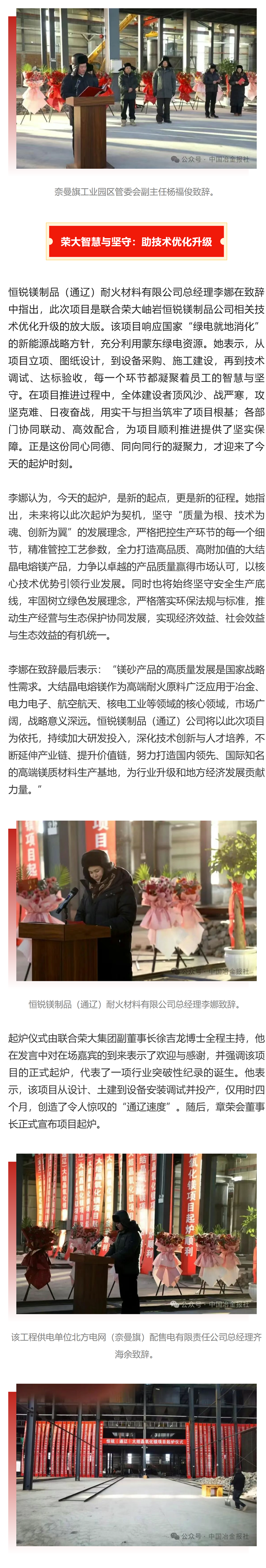 四个月建成 创造令人惊叹的“通辽速度”——联合荣大恒锐(通辽)5万吨大结晶氧化镁项目起炉仪式侧记