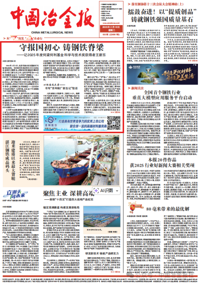 一路奋进,王新东始终把钢铁报国作为最高追求。“钢铁绝不能让人‘卡脖子’,科技工作者就是要在应用技术创新上为国家的强大做贡献!”年过花甲,他朴素的话语依然掷地有声。如今,王新东仍奔波在各钢铁公司、大学、研究院所。“钢铁是工业的粮食。”他说,“我们要让这碗‘饭’更香、更健康、更绿色、更智能。”