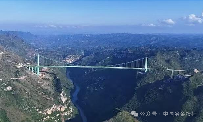 就在不久前,因“横竖都是世界第一”闻名的花江峡谷大桥建成通车。这座横跨贵州花江峡谷的超级工程,桥面距谷底垂直高度625米,相当于200多层楼高,主桥跨径1420米,是世界第一高桥、世界第一山区跨径最大桥梁。撑起这座超级工程的核心材料——直径5.7毫米、强度达1960兆帕的高强度桥梁缆索钢,就来自青岛特钢。