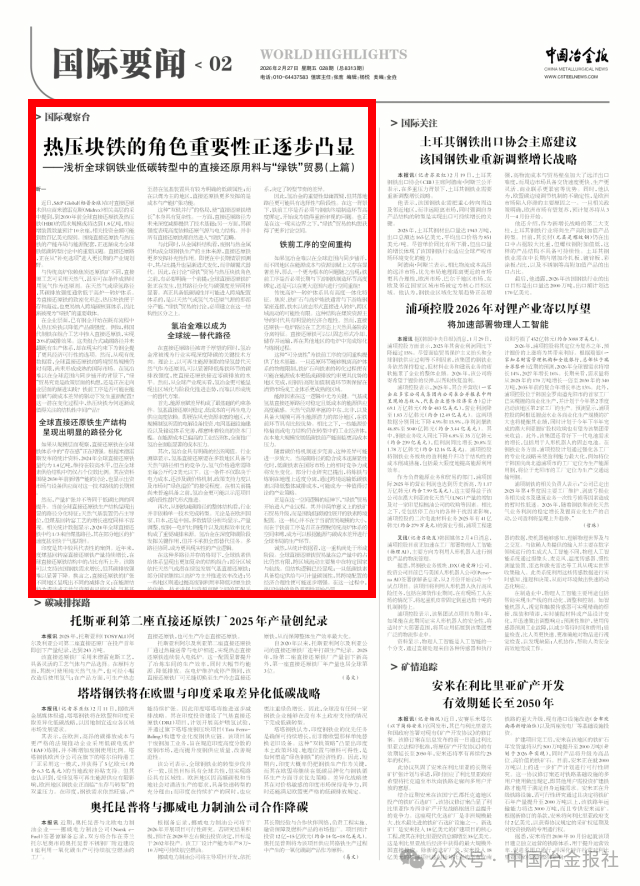 与传统高炉依赖焦炭还原铁矿不同,直接还原工艺可采用天然气,甚至可在条件成熟时使用氢气作为还原剂。在天然气或绿氢路径下,其碳排放强度通常低于高炉—转炉体系。作为直接还原铁的致密化形态,热压块铁便于储存和海运,也更易纳入跨境碳核算体系,因此逐渐被视为“绿铁”的重要载体。