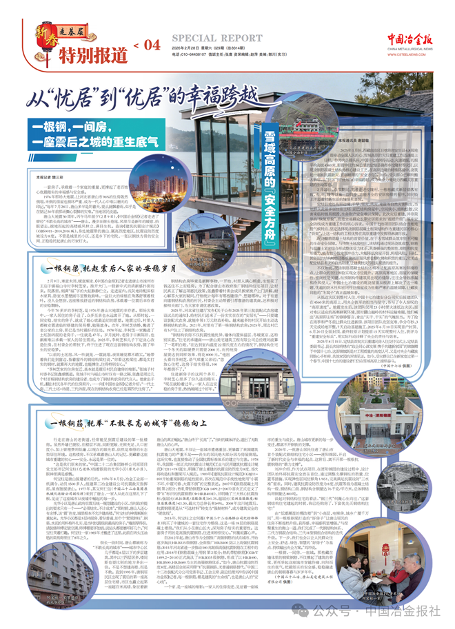 唐山大地震50周年,丙午马年前夕(2月9日),《中国冶金报》记者走进了曾经“不敢长高的城市”——唐山。漫步在街头巷尾,风里尽是新年的暖意,抬眼望去,拔地而起的高楼威风林立、满目生机。查询《建筑抗震设计规范》(GB50011-2010,2016版),身处地震带的唐山,属高烈度地区,抗震设防烈度被设为8度。不管是城里的小区,还是乡下的宅院,一张以钢铁为骨的安全网,正稳稳托起唐山的万家灯火。