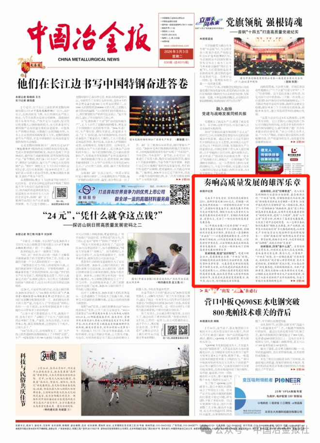 从《中国冶金报》刊发的首钢“十四五”高质量发展系列报道中可以清晰看到,首钢的优异答卷并非偶然,其背后是一套清晰的“方法论”——以党建铸魂凝聚合力、以科学战略引领航向、以科技创新激发动能、以绿色转型重塑底色、以数智赋能再造流程的高质量发展路径。正是这一路径奏响了首钢高质量发展的雄浑乐章。