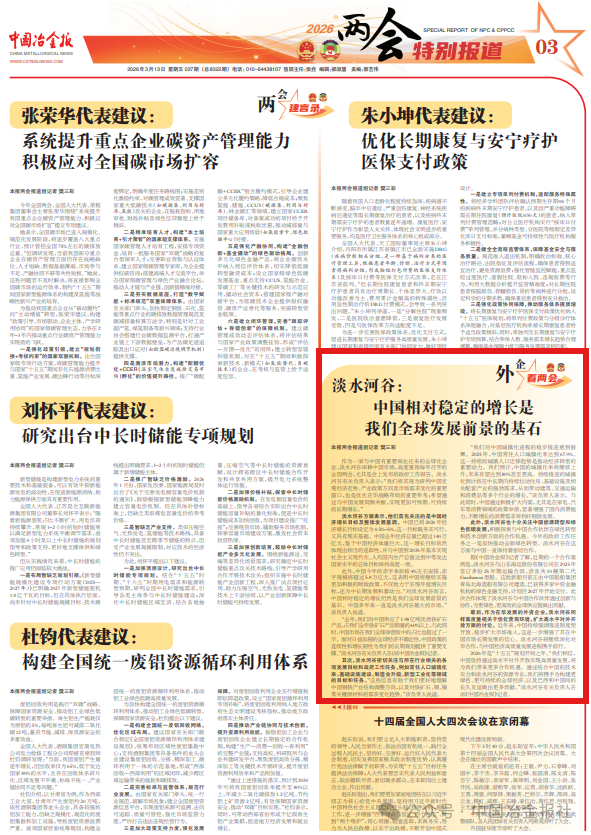 作为一家与中国有重要商业往来的全球化企业,淡水河谷深耕中国市场,高度重视每年召开的全国两会,尤其是会上发布的政府工作报告。淡水河谷有关负责人表示:“我们将其视为研判中国宏观经济走势、产业政策方向及市场需求变化的重要窗口,也是优化在华战略布局的重要参考;希望通过与中国发展同频共振,实现更加可预期、可持续的长期增长。”