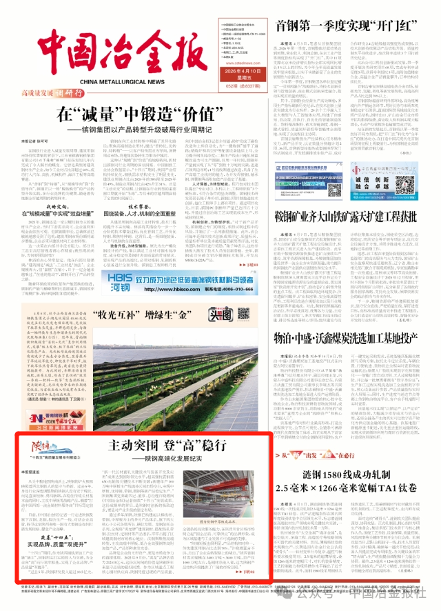 从直面短板的清醒认识到谋定长远的战略布局,陕钢的向“高”而行,是一场刀刃向内的自我革命,更是一次顺应时代的主动突围。