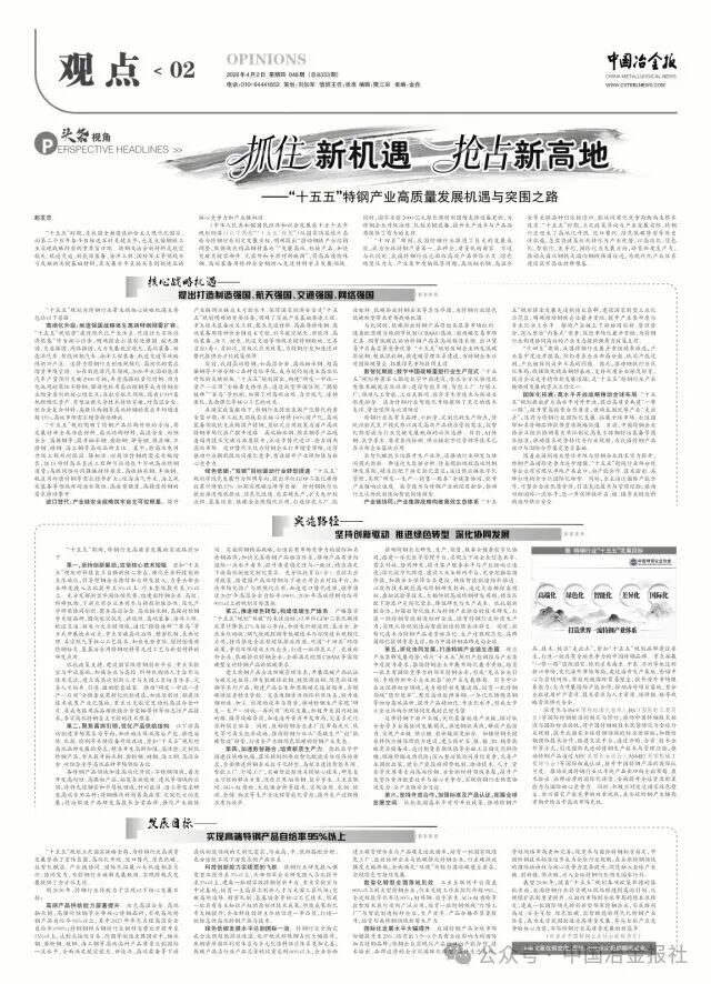 “十五五”规划立足国家战略全局,为特钢行业高质量发展擘画了宏伟蓝图,高端化升级、进口替代、绿色低碳、数智化赋能、产业链协同、国际化拓展六大机遇相互交织、协同发力,为特钢行业破解发展瓶颈、实现跨越式发展提供了全方位支撑。